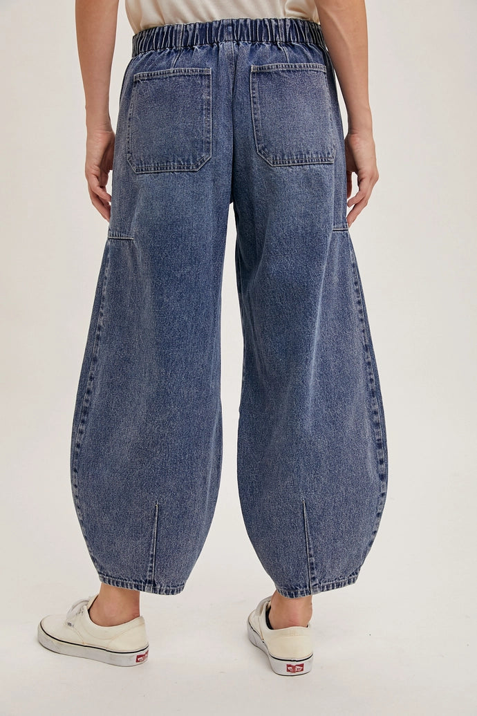 Effortlessly chic and undeniably comfortable, these mid-waist barrel jeans deliver the relaxed silhouette everyone's craving. The adjustable drawstring lets you customize your fit perfectly, while the roomy barrel leg tapers smoothly at the ankles for a flattering, modern shape. Whether you're dressing up or keeping it casual, this versatile pair transitions seamlessly through your day with style and ease.