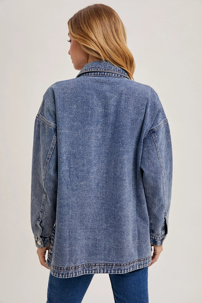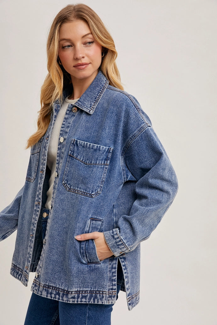Cozy up in style this season with our Denim Shirt Jacket! Ideal for layering through fall and winter, it comes equipped with convenient pockets to keep your essentials close while adding warmth. The classic button-down design brings a fun, laid-back vibe to any look, making chilly days brighter and way more comfortable. Whether layered over tees or dresses, this jacket is the playful addition your closet craves.